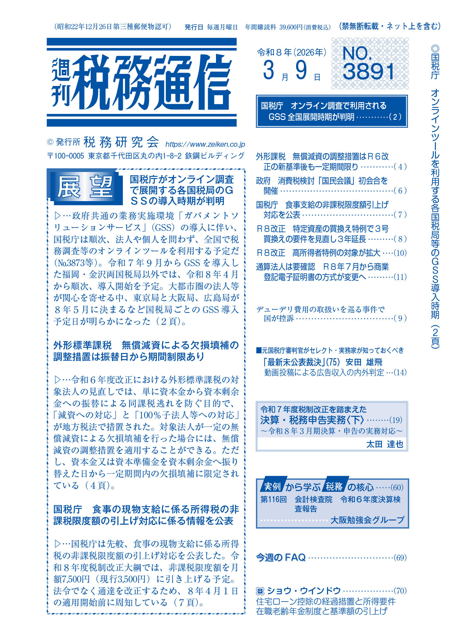 株式会社税務研究会から発刊されている週刊税務通信の2026年1月5日号に原稿執筆しています。