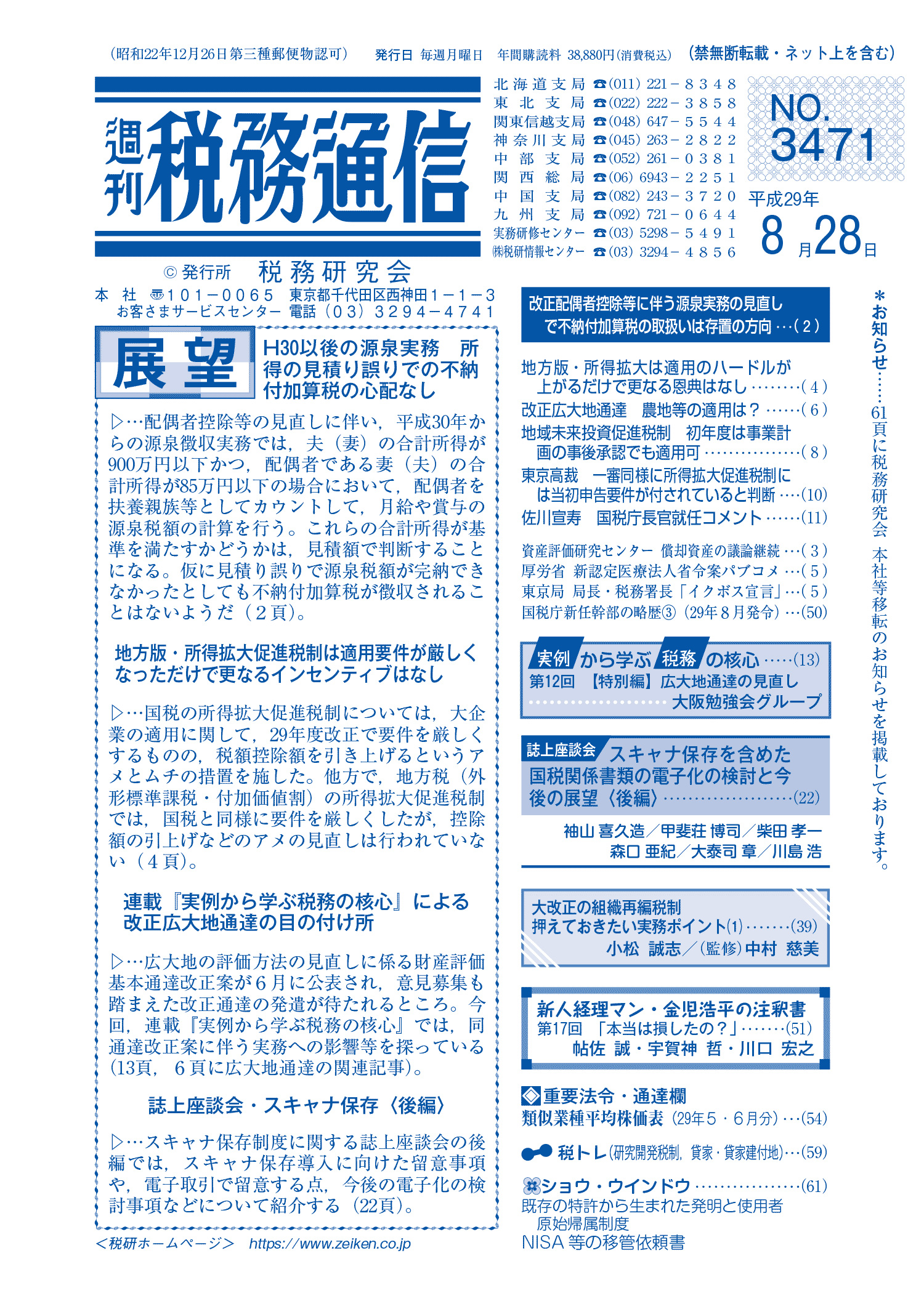 株式会社税務研究会から発刊されている週刊税務通信の2017年8月28日号に原稿執筆しています。