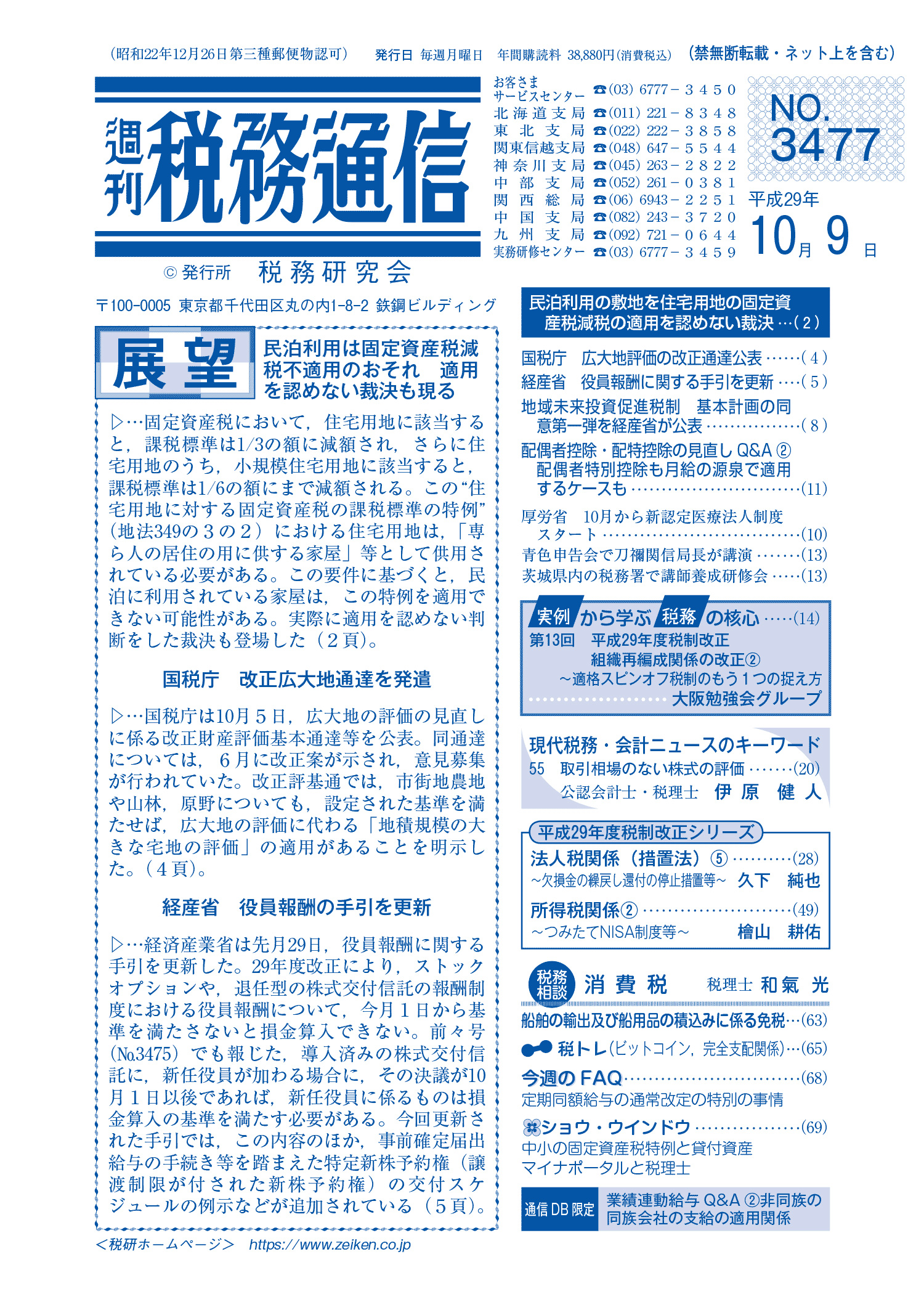 株式会社税務研究会から発刊されている週刊税務通信の2017年10月9日号に原稿執筆しています。