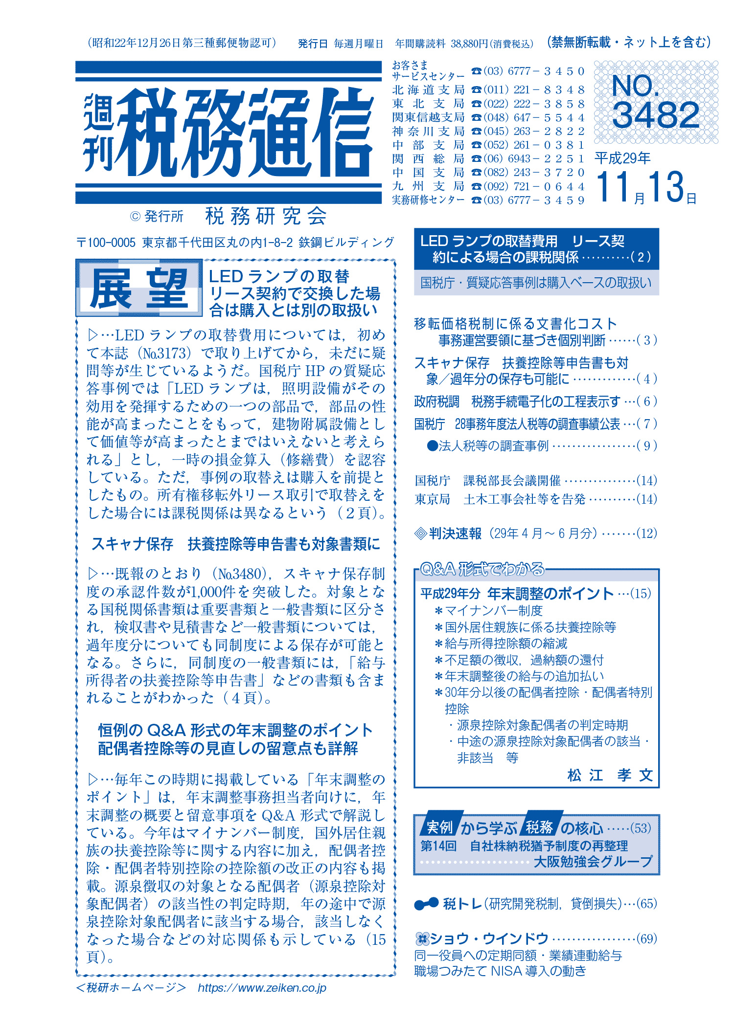 株式会社税務研究会から発刊されている週刊税務通信の2017年11月13日号に原稿執筆しています。
