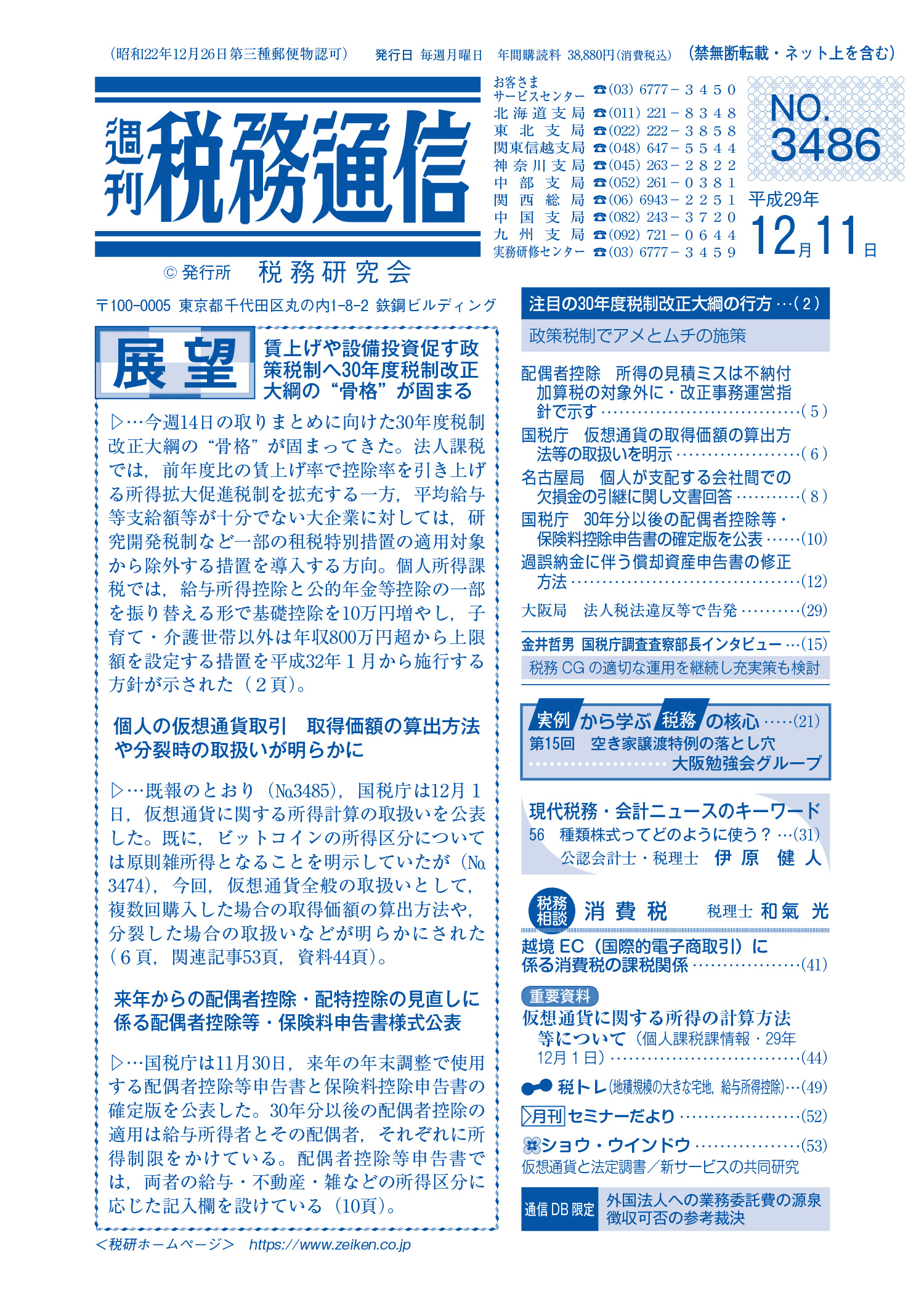 株式会社税務研究会から発刊されている週刊税務通信の2017年12月11日号に原稿執筆しています。
