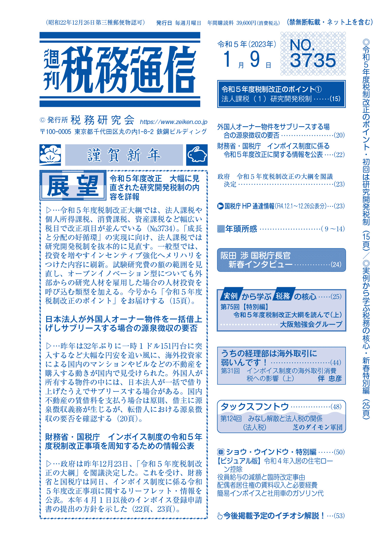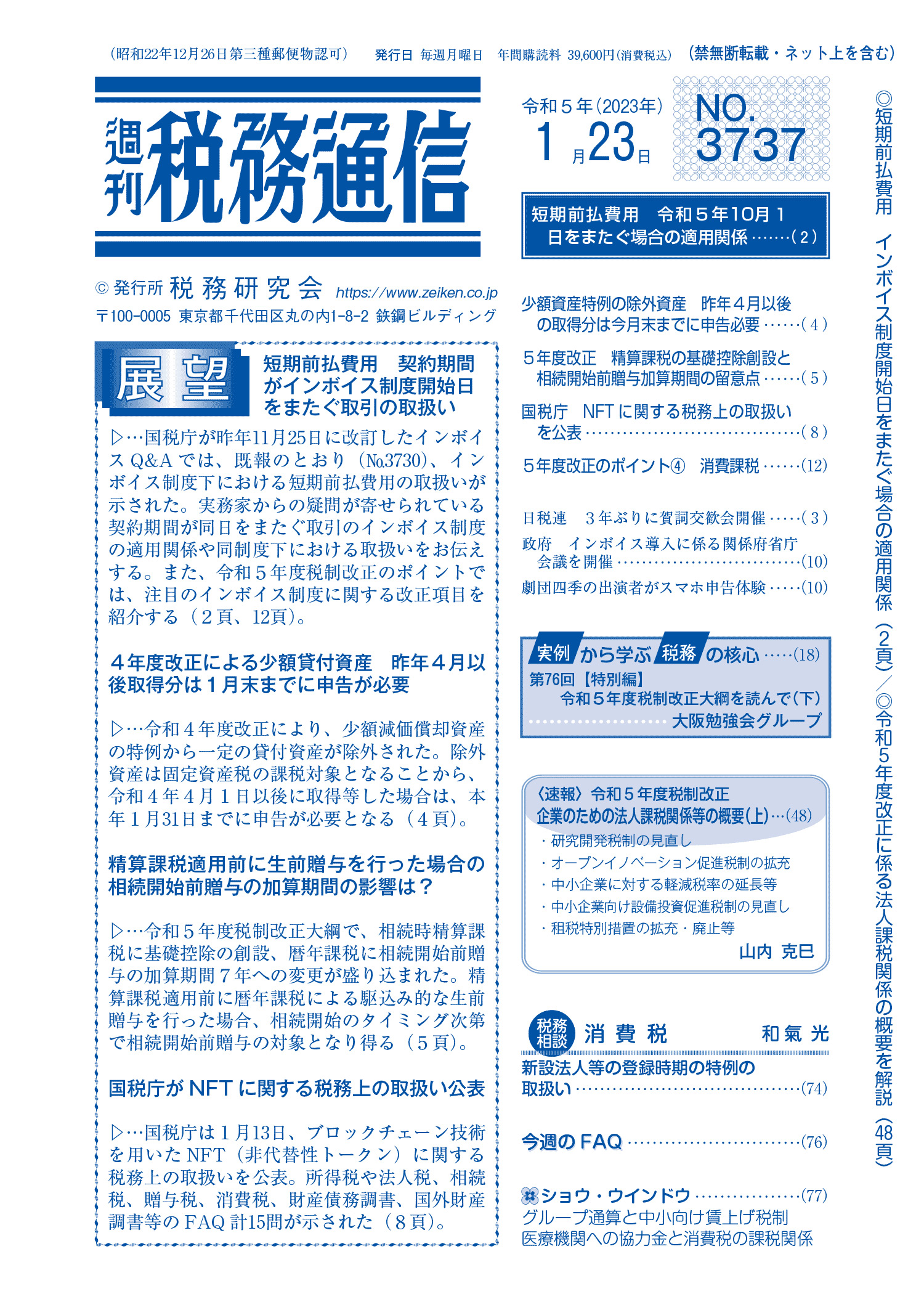 株式会社税務研究会から発刊されている週刊税務通信の2023年1月9日号に原稿執筆しています。