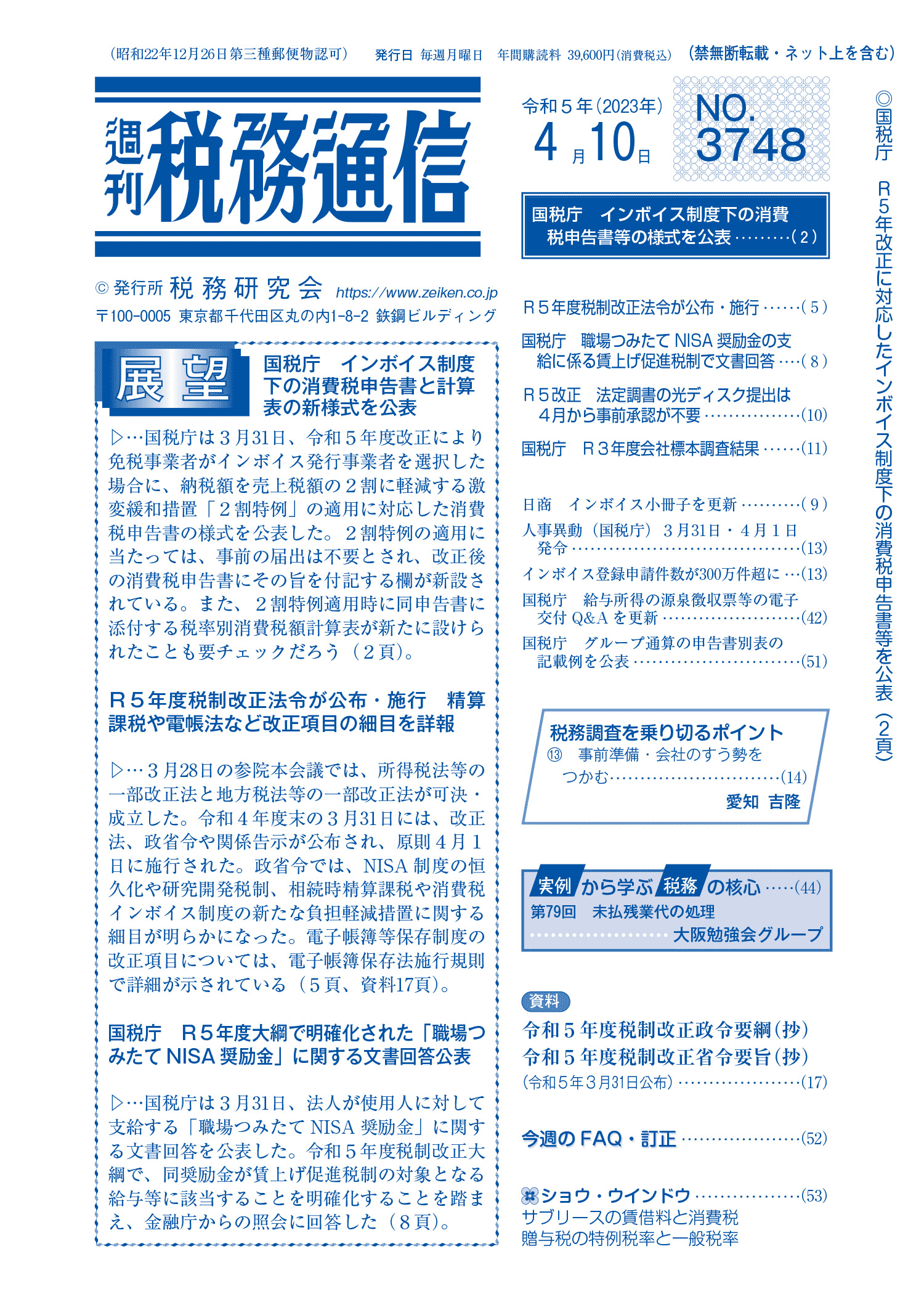 株式会社税務研究会から発刊されている週刊税務通信の2023年4月10日号に原稿執筆しています。