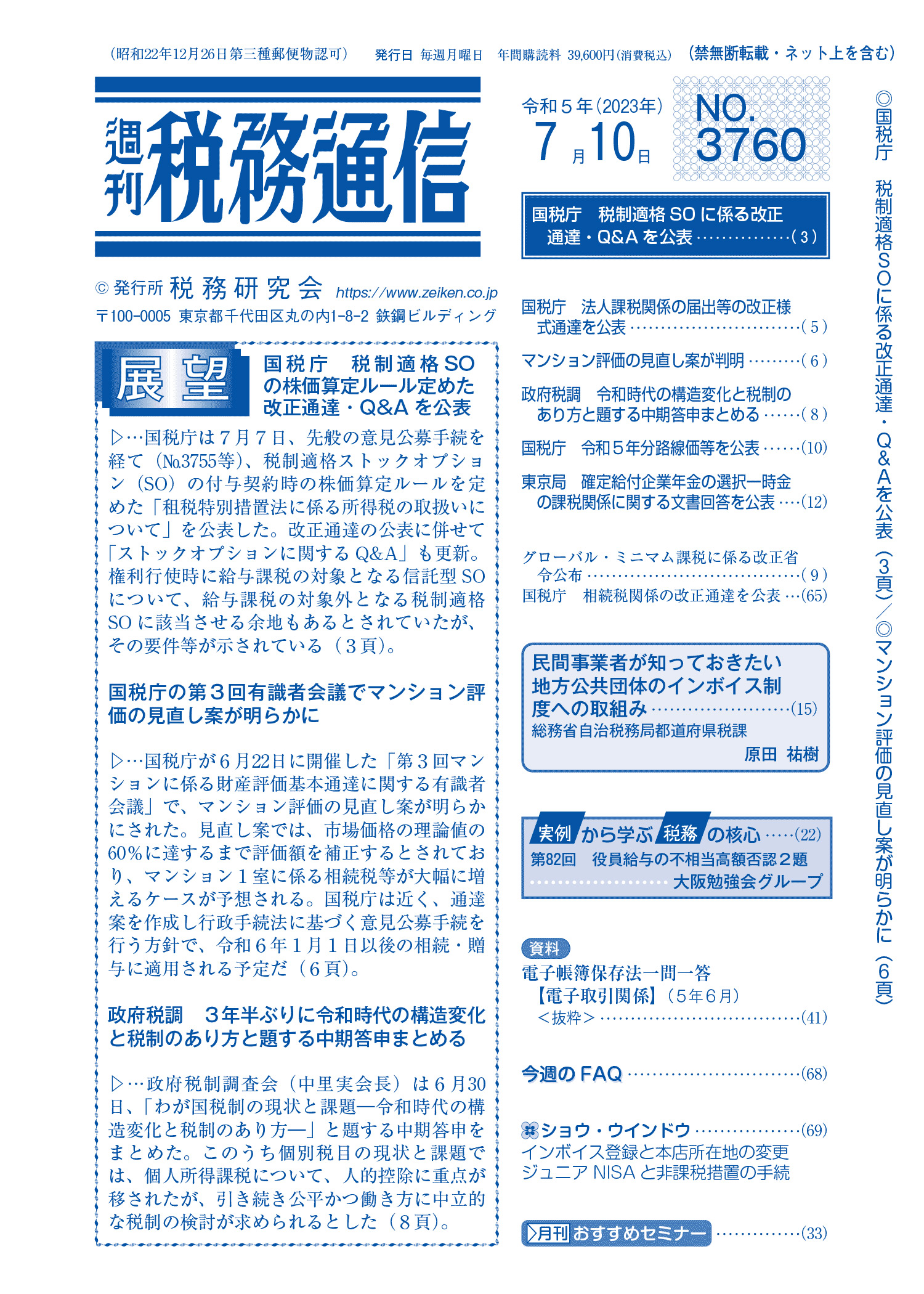 株式会社税務研究会から発刊されている週刊税務通信の2023年7月10日号に原稿執筆しています。