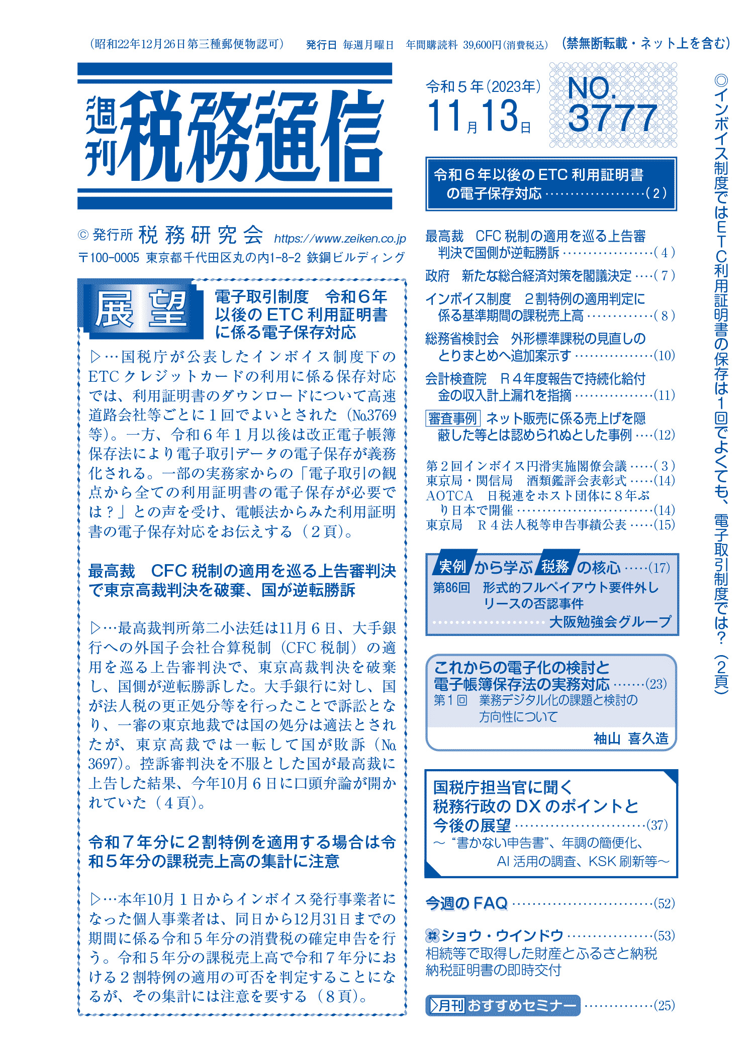株式会社税務研究会から発刊されている週刊税務通信の2023年11月13日号に原稿執筆しています。