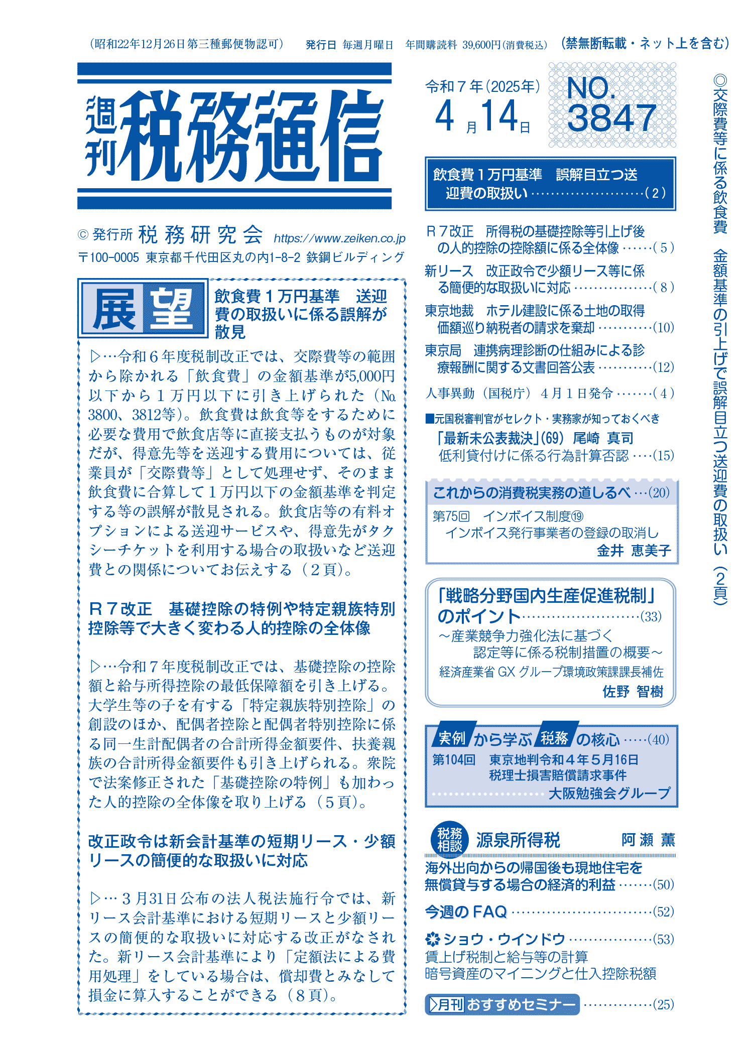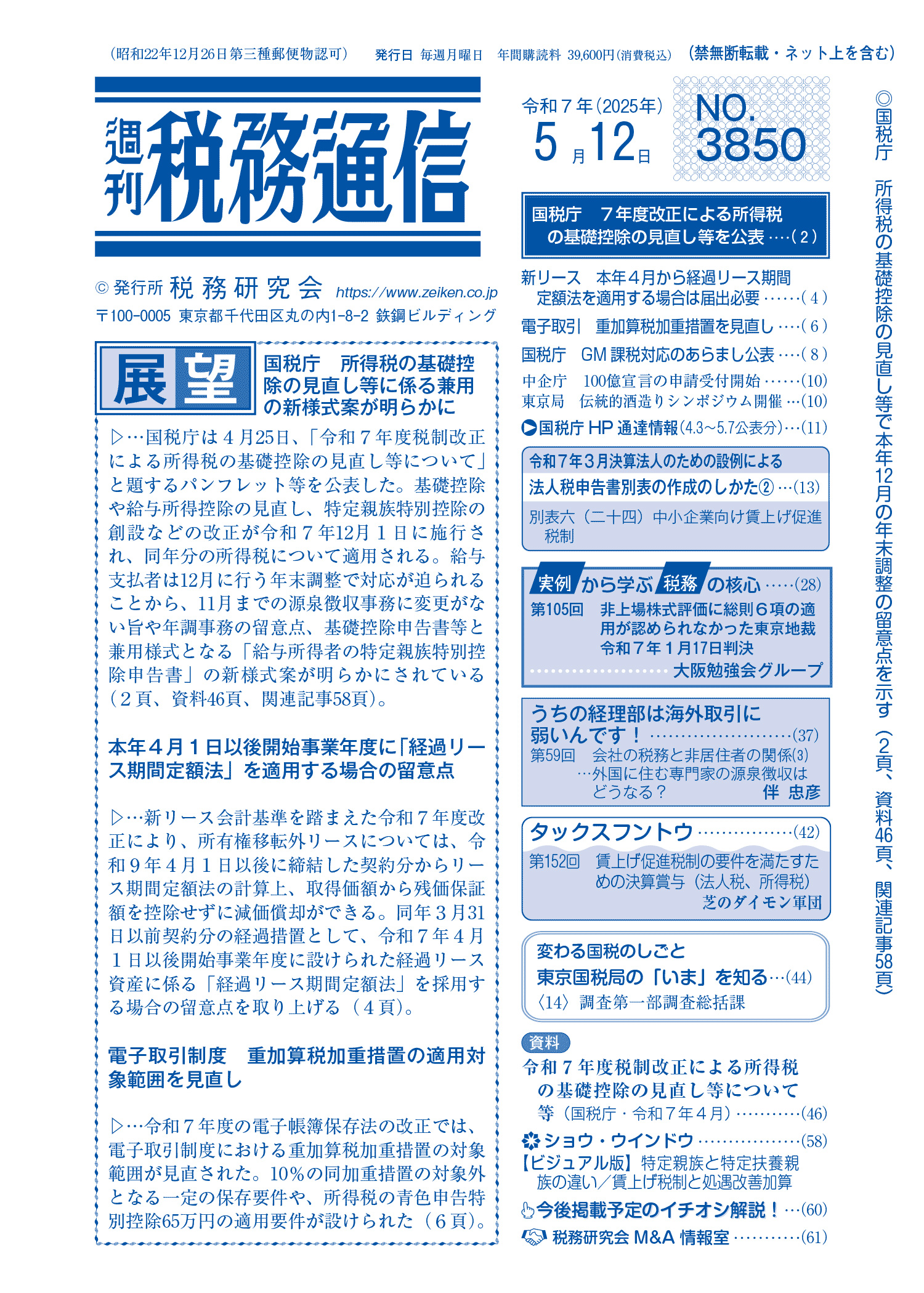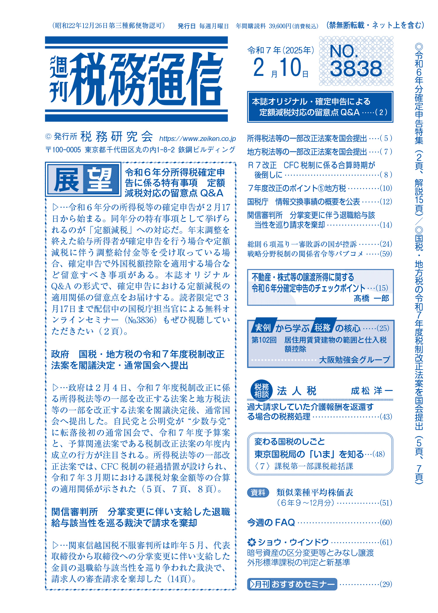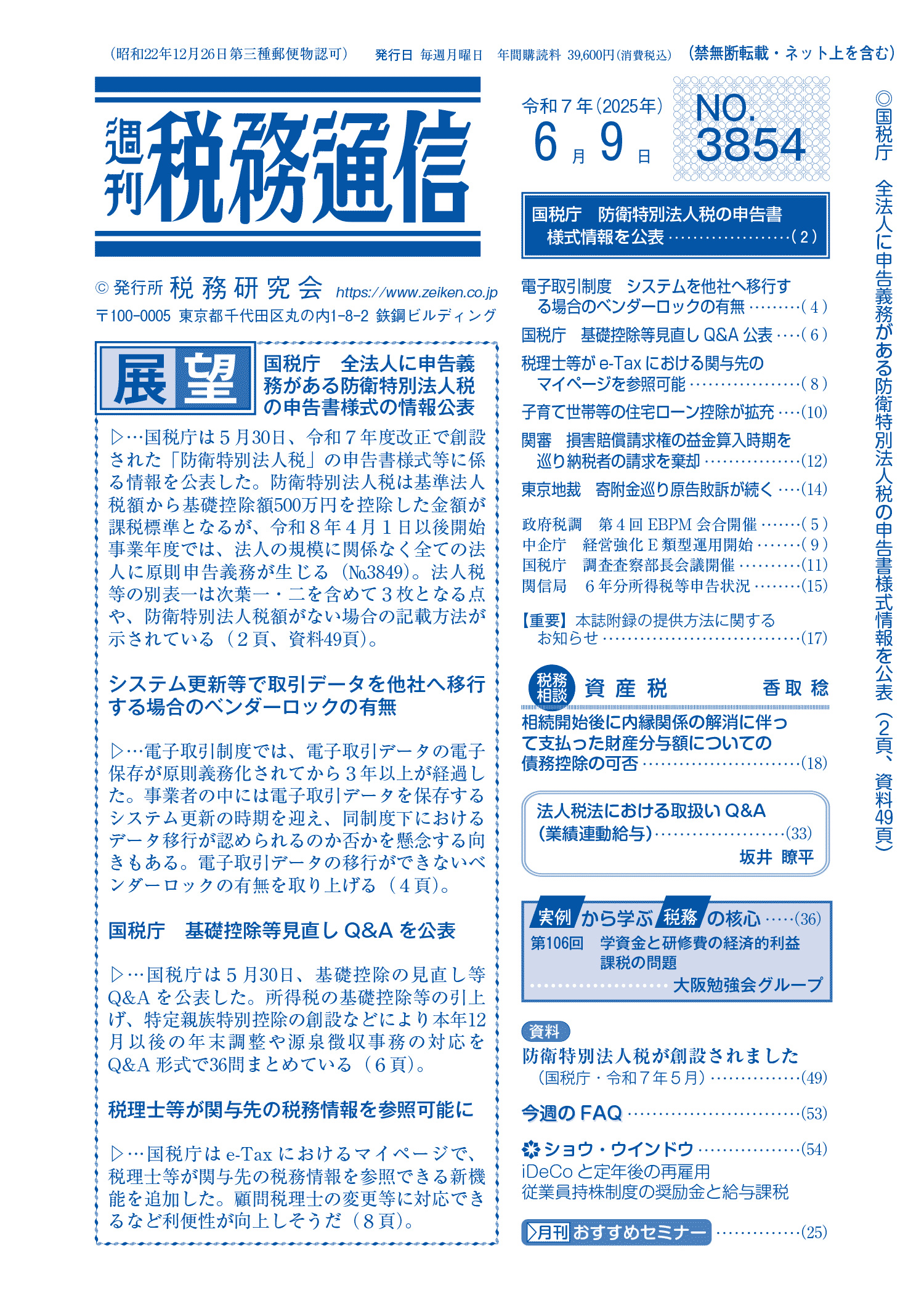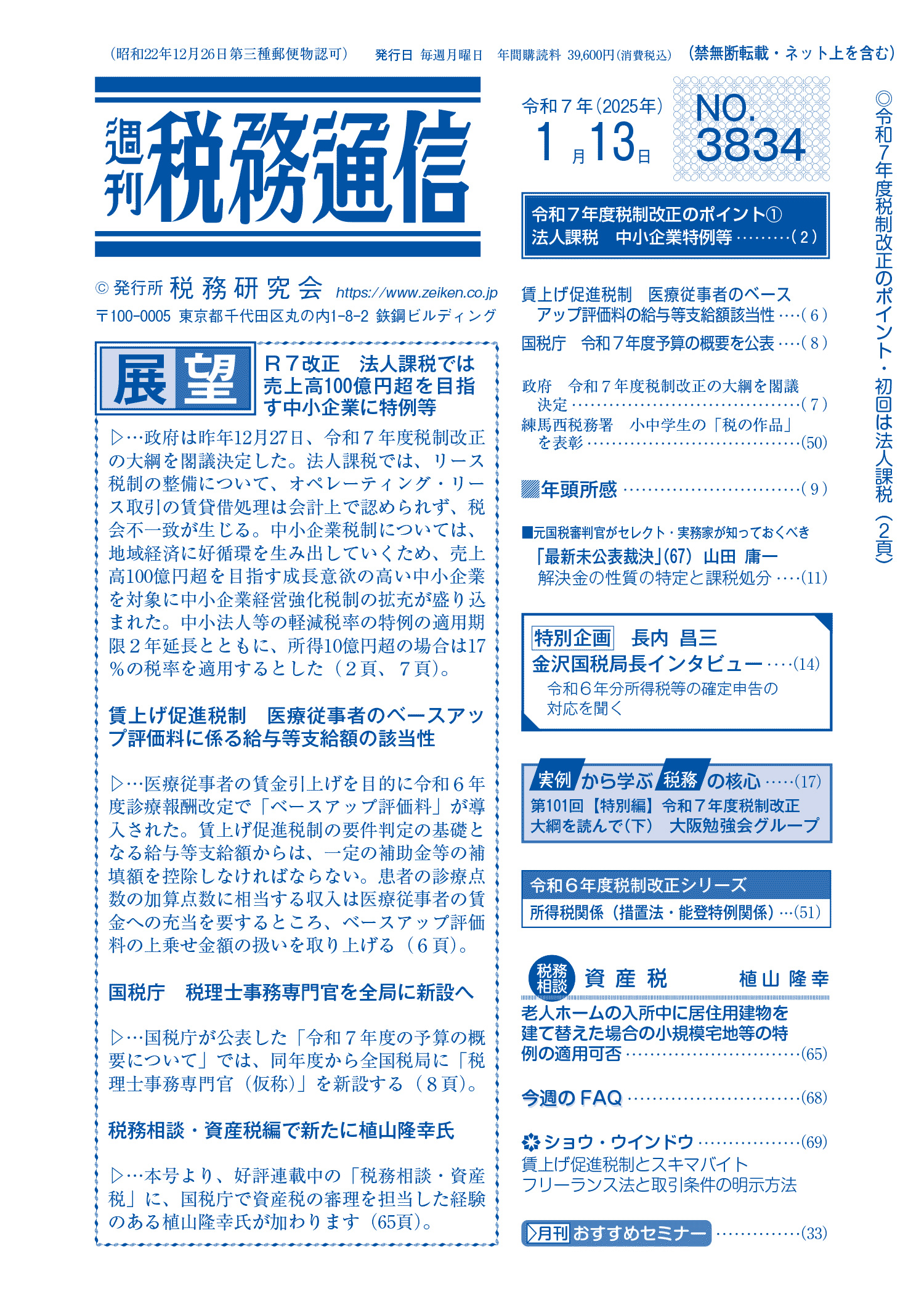 株式会社税務研究会から発刊されている週刊税務通信の2025年1月6日号に原稿執筆しています。