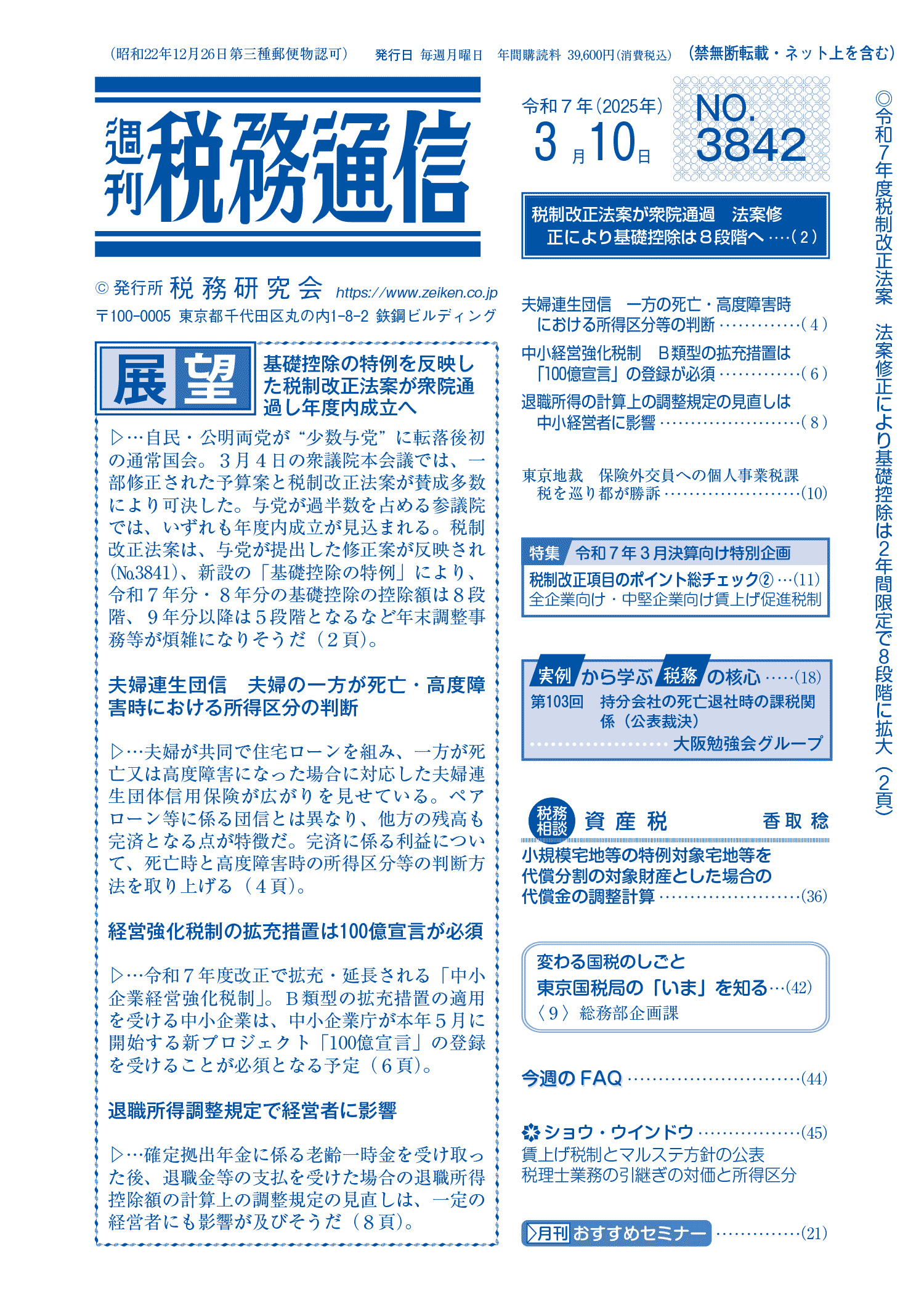 株式会社税務研究会から発刊されている週刊税務通信の2025年3月10日号に原稿執筆しています。